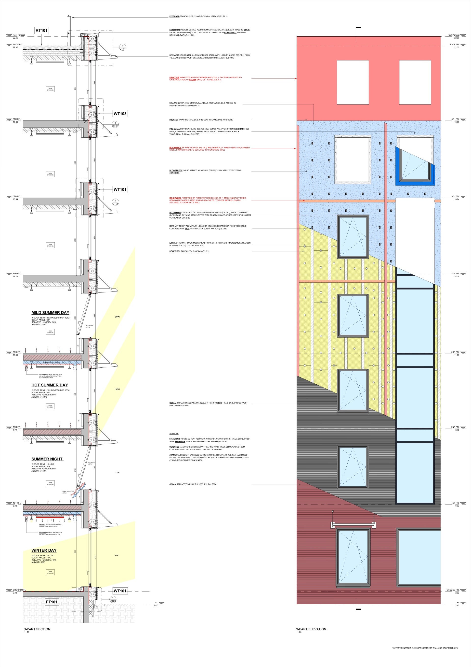 My role focused on the development of coordinated technical drawings, including general arrangement drawings, façade systems, and detailed construction junctions. I produced 1:5 and 1:10 detailing addressing key areas such as wall build-ups, window interfaces, and structural connections.