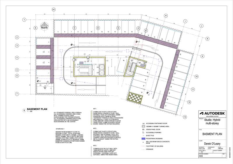 I also developed drawings in line with Irish Building Regulations, with particular reference to TGD Part B (Fire Safety) and Part M (Access and Use), ensuring compliance in areas such as escape strategy, compartmentation, and accessibility. The project demonstrates a strong understanding of buildability, regulatory compliance, and the integration of new and existing construction.